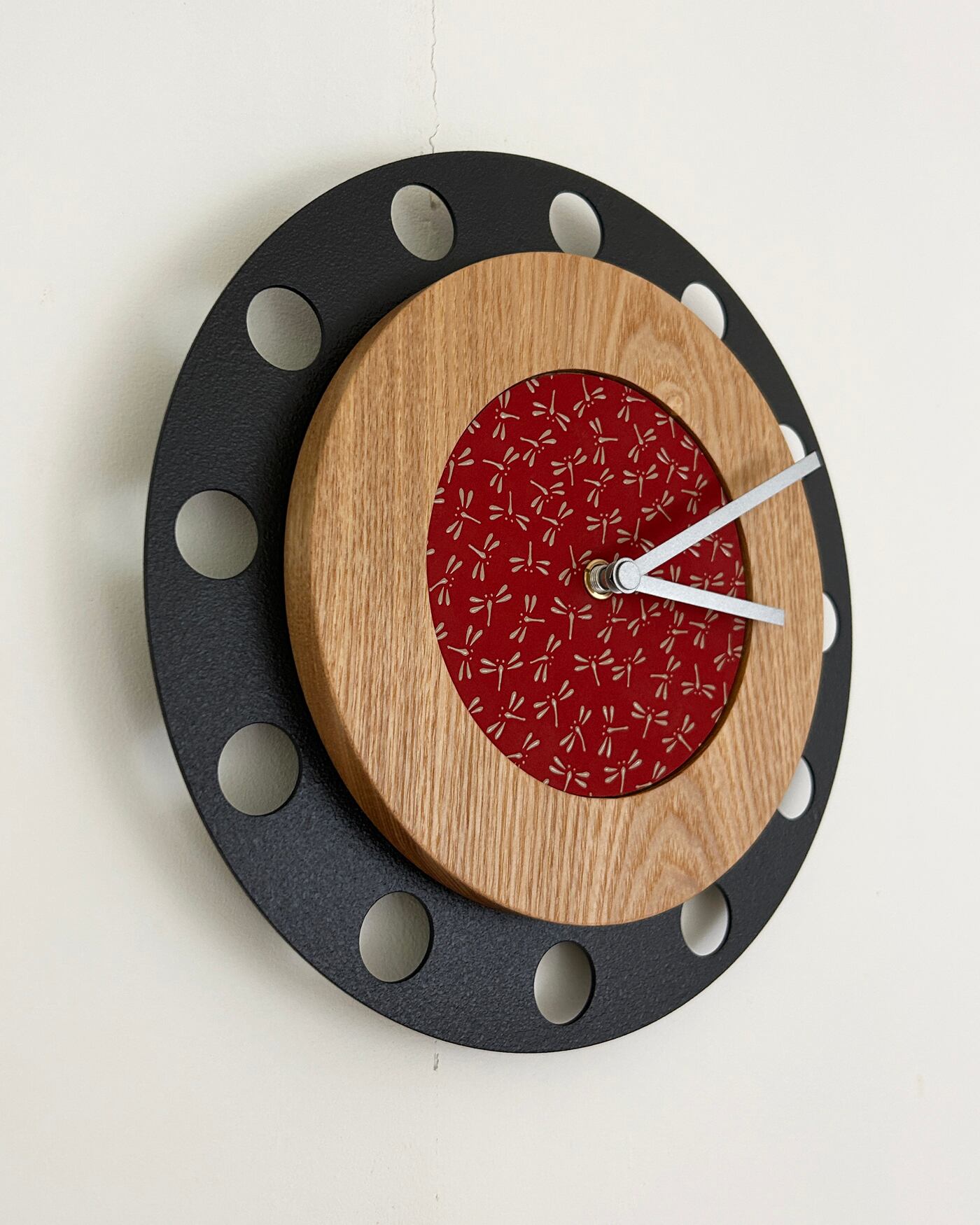 甲州印伝クロック:とんぼ赤・白 No.01092